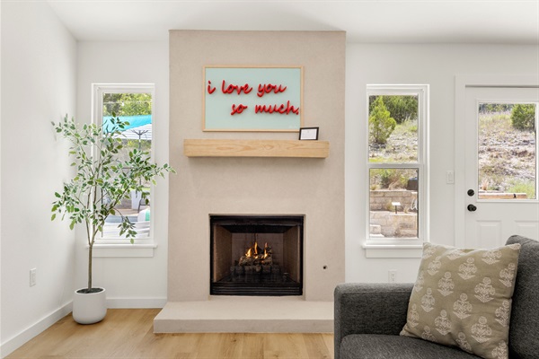 Netflix and warm up next to our gas fireplace.