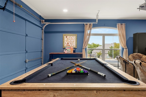 Our game/movie garage is equipped with A/C and heat for your comfort!