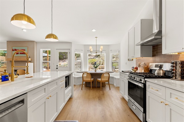 Start each day with a tasty breakfast and coffee in this sunny window dining nook.
