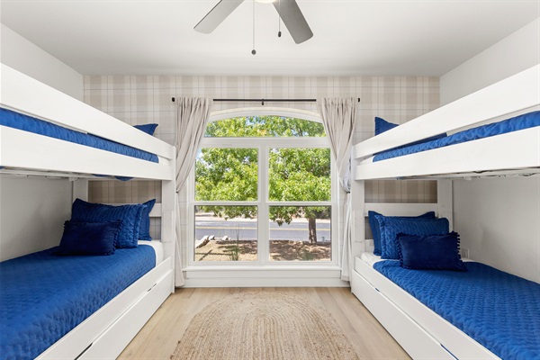 Children are going to love the bunk bedroom with two extra twin trundles.